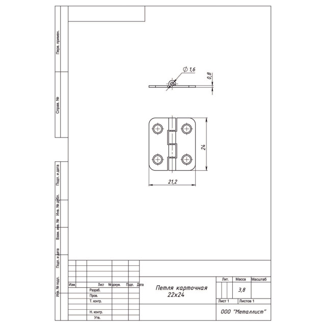 петля карточная 22х24мм черный 2шт