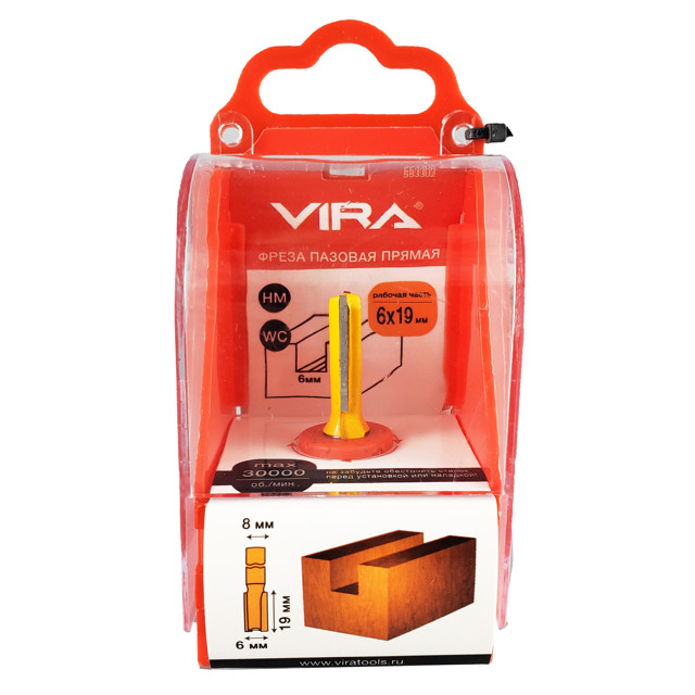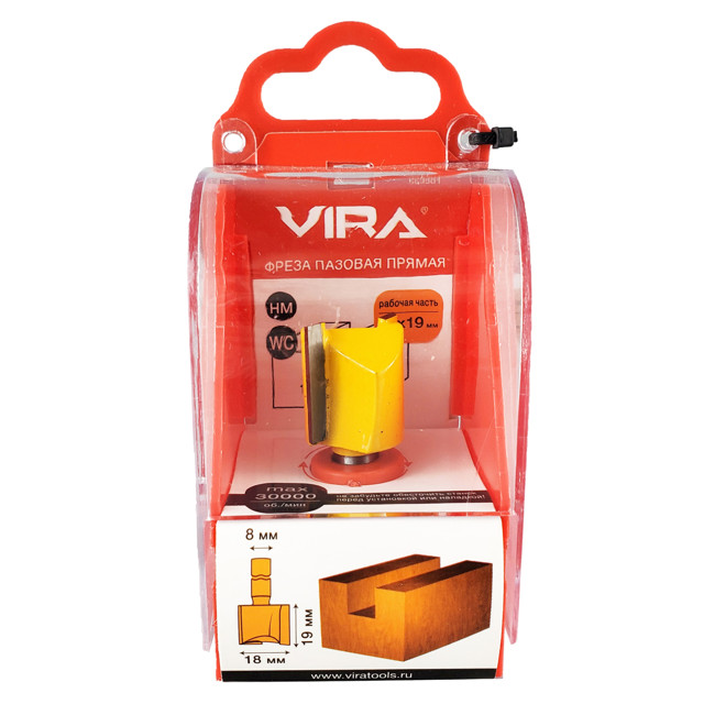 фреза по дереву VIRA пазовая прямая 12х19мм с улучшенным зубом