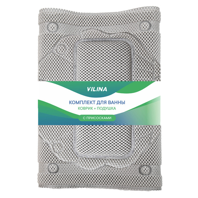 набор коврик и подушка для ванны с присосками ВИЛИНА Лотос ПВХ серый