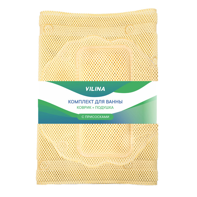 набор коврик и подушка для ванны с присосками ВИЛИНА Лотос ПВХ бежевый