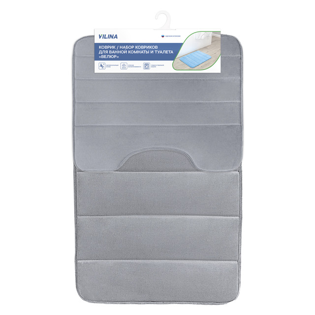 набор ковриков ВИЛИНА Велюр 50х80см, 50х50см ПВХ светло-серый