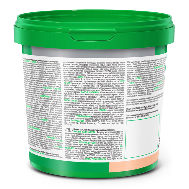 краска акриловая PARADE W3 для стен и потолков белая 2,5л, арт.8311404
