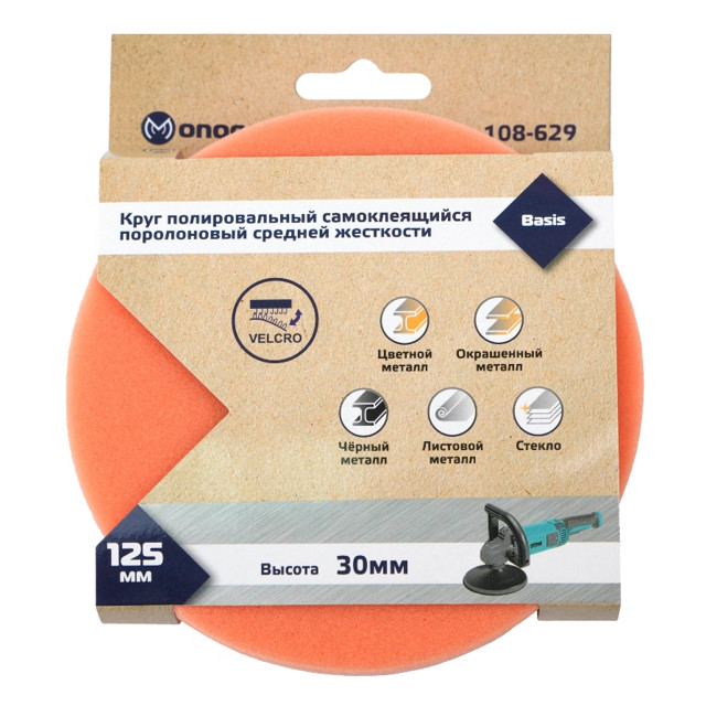 круг полировальный MONOGRAM поролоновый на липучке 125мм жесткий