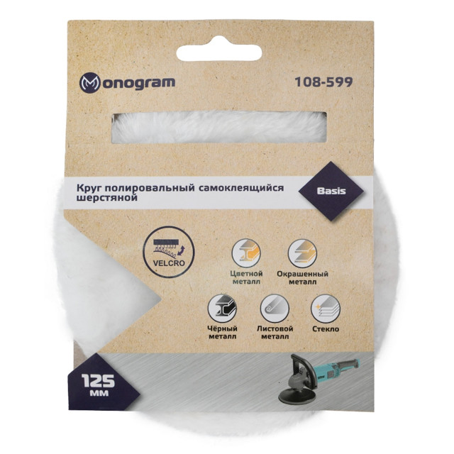 круг полировальный MONOGRAM шерстяной на липучке 125мм