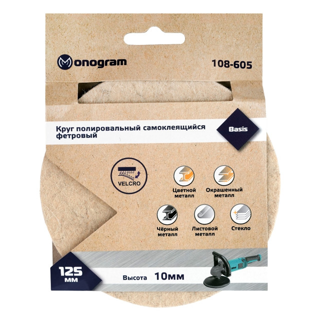 круг полировальный MONOGRAM фетровый на липучке 125мм