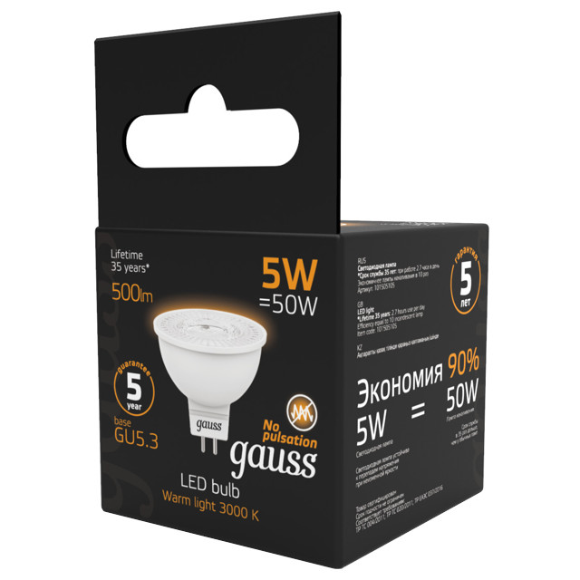 лампа GAUSS MR16 5Вт GU5.3 LED 500Лм 3000K 220В рефлектор