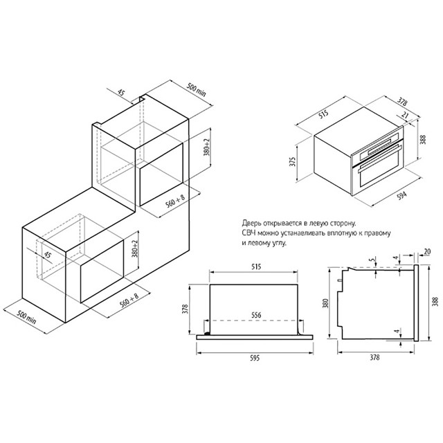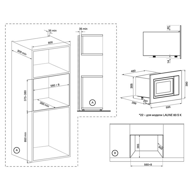 печь СВЧ встраиваемая KRONA RIFLESSO 60 BL гриль 25л