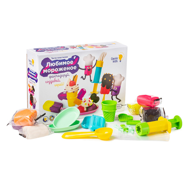 - В наборе: тесто-пластилин - 6 шт по 30гр, формочки